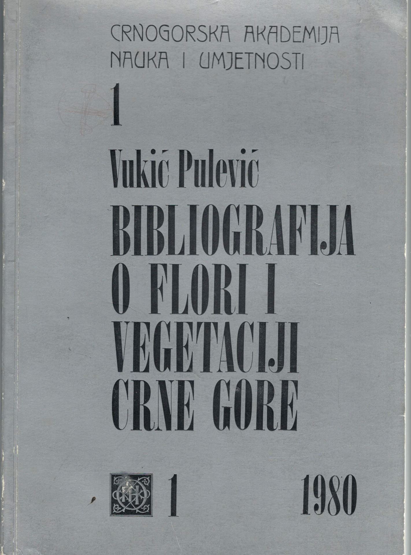 Bibliography of flora and vegetation of Montenegro (Bibliografia o flori i vegetaciji Crne Gore, kn.1).Volume 1. 1980. 235 p. Hardcover. - In Montenegrin.