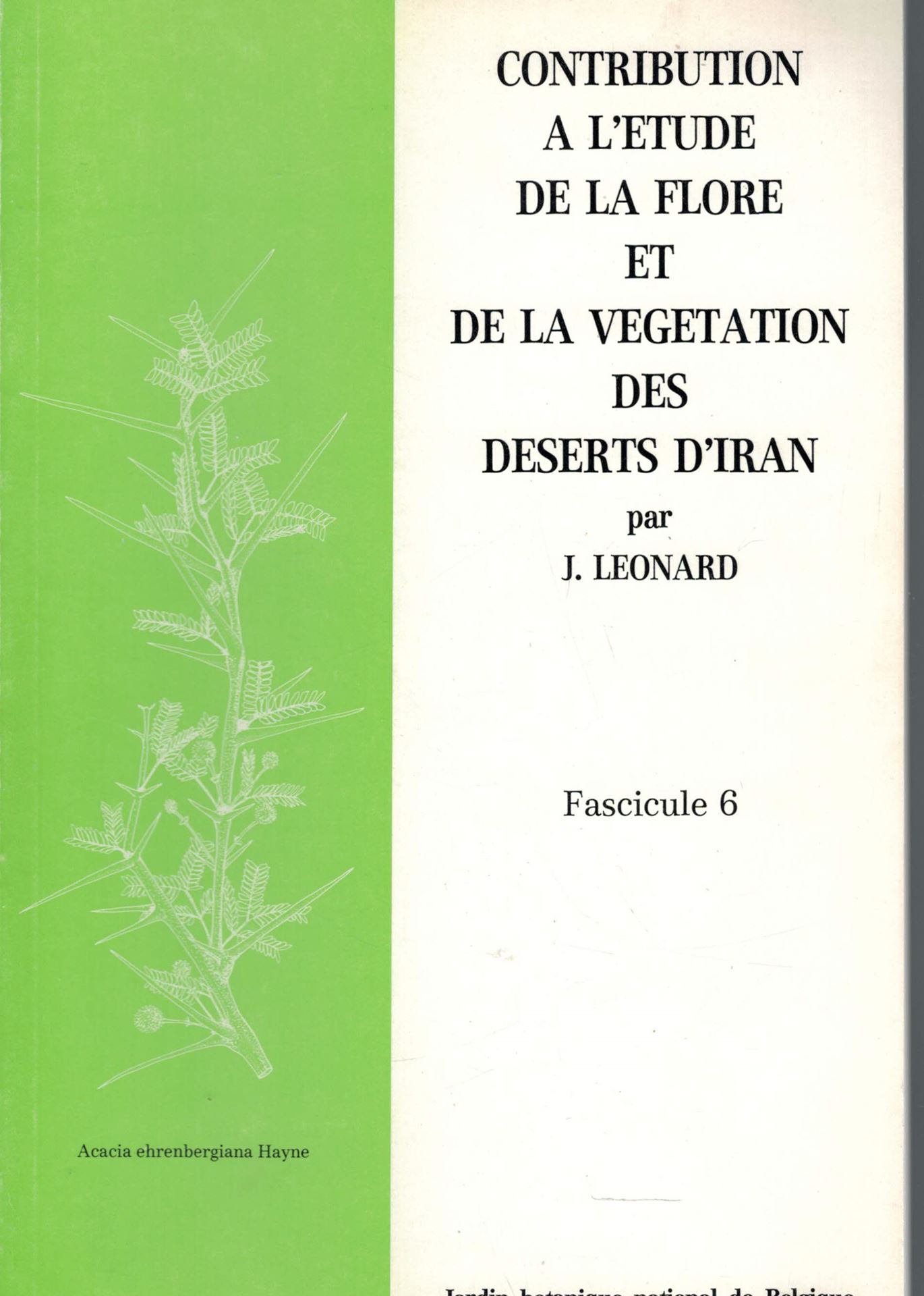 Leonard,J.:Contribution a l'etude de la Flore et de la Vegetation des Deserts d'Iran.(Dasht-E-Kavis,Dasht-E-Lut,Jaz-Murian).Fasc.6:Dicotyle- dons(5e partie).1986.12 figs.8 photos.1 map.95 p.gr8vo.Broche. 17.12 (22746)