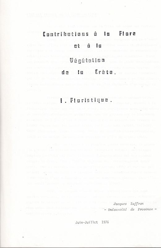 Contributions à la flore et à la végétation de la Crète. Part 1: Floristique. 1976. 223 p. 4to. Paper bd.