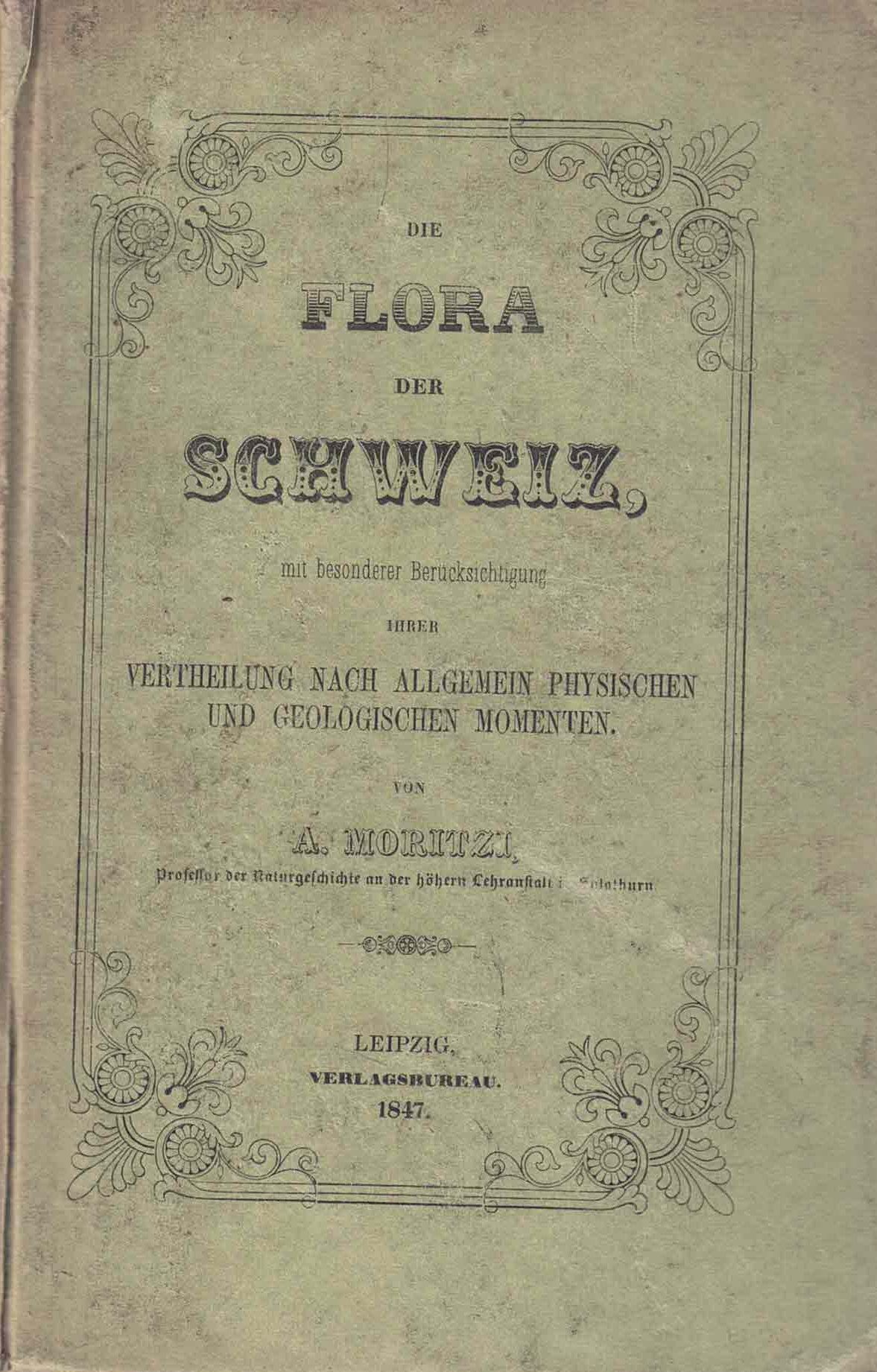 Die Flora der Schweiz mit besonderer Berücksichtigung ihrer Vertheilung nach allgemein physischen und geologischen Momenten. 1847.1 farbige gefaltete geologische Karte der Schweiz XXII, 640 S. 8vo. Kartonniert.