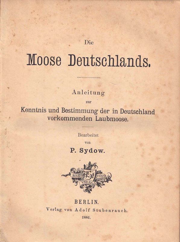 Sydow, P.: Die Moose Deutschlands. Anleitung zur Kenntnis und Bestimmung der in Deutschland vorkommenden Laubmoose.1881.XVI,185 S.8vo.Gebunden. (69057) 39.00