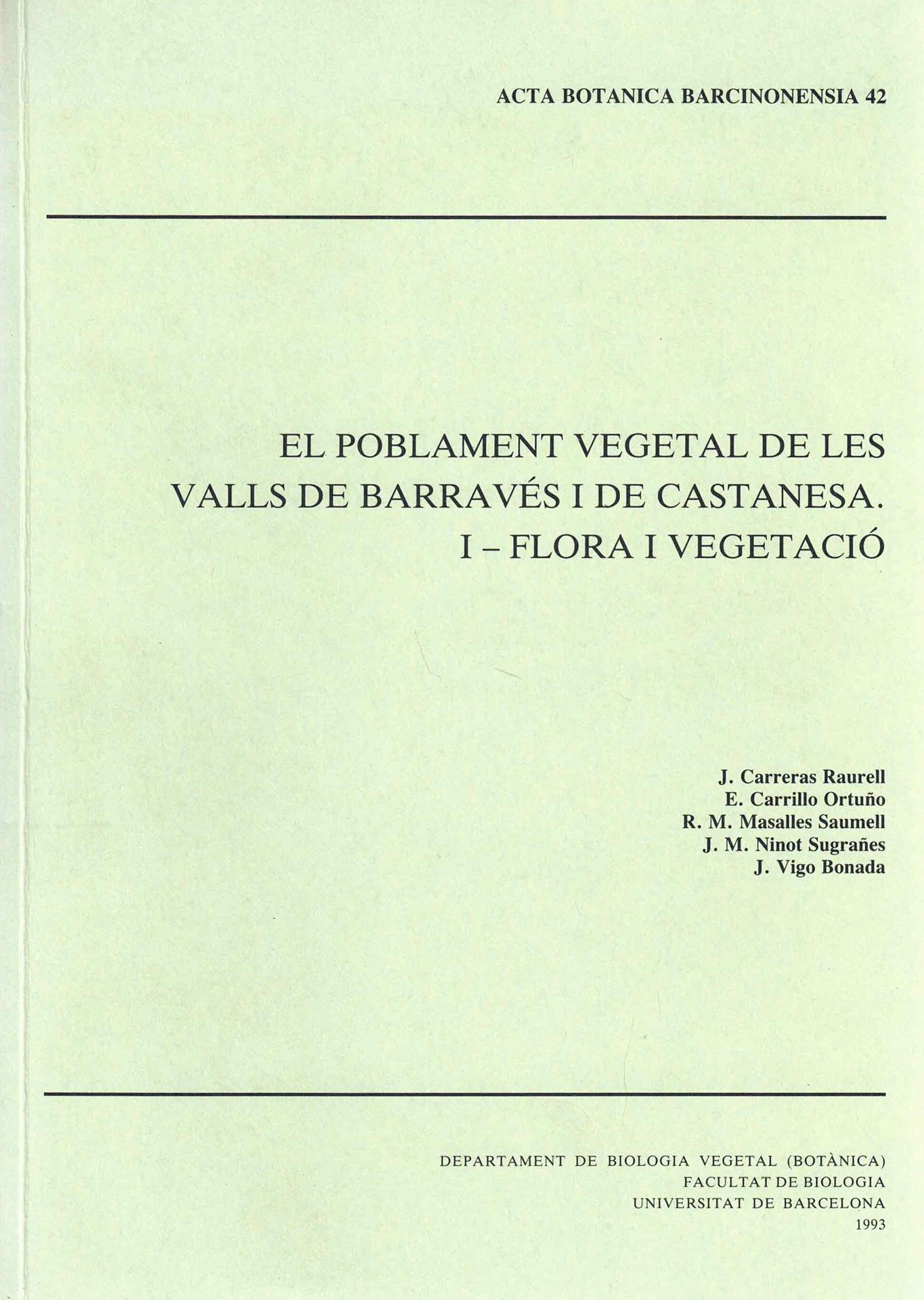 El Poblament Vegetal de les Valls de Barravés i de Castanesa. Volume 1: Flora i Vegetació. 1993. (Acta Botanica Barcinonensia, 42). 392 p. gr8vo. Paper bd.