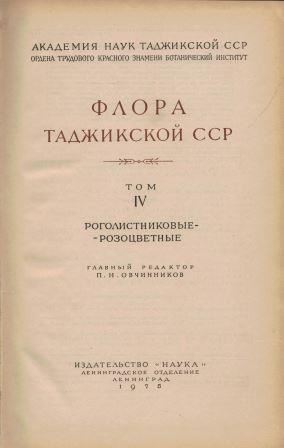 Flora Tadzikskoi SSR. Volume 4: Ceratophyllaceae to Platanaceae. 1975. 91 pls. (= line drawings). 576 p. gr8vo. Hardcover.- In Russian, with Latin nomenclature.