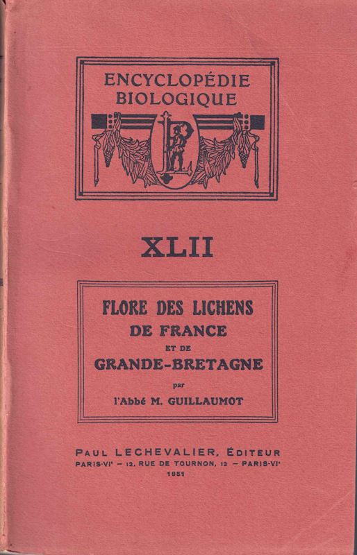 Flore des Lichens de France et de Grande-Bretagne. 1951. (Encyclopedie Biolog., 42). 287 figs. 605 p. gr8vo. Broche.