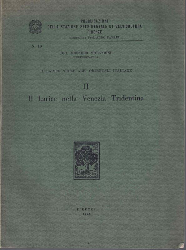 Il Larice Nelle Alpui Orientali Italiane. Part 2: Il Larice nella Venezia Tridentina. 1956. (Pubblicazioni Della Stazione Sperimentale di Selvicoltura Firenze, 10). illus. 1 foldg. distribution map. 270 p. 4to. Paper bd.