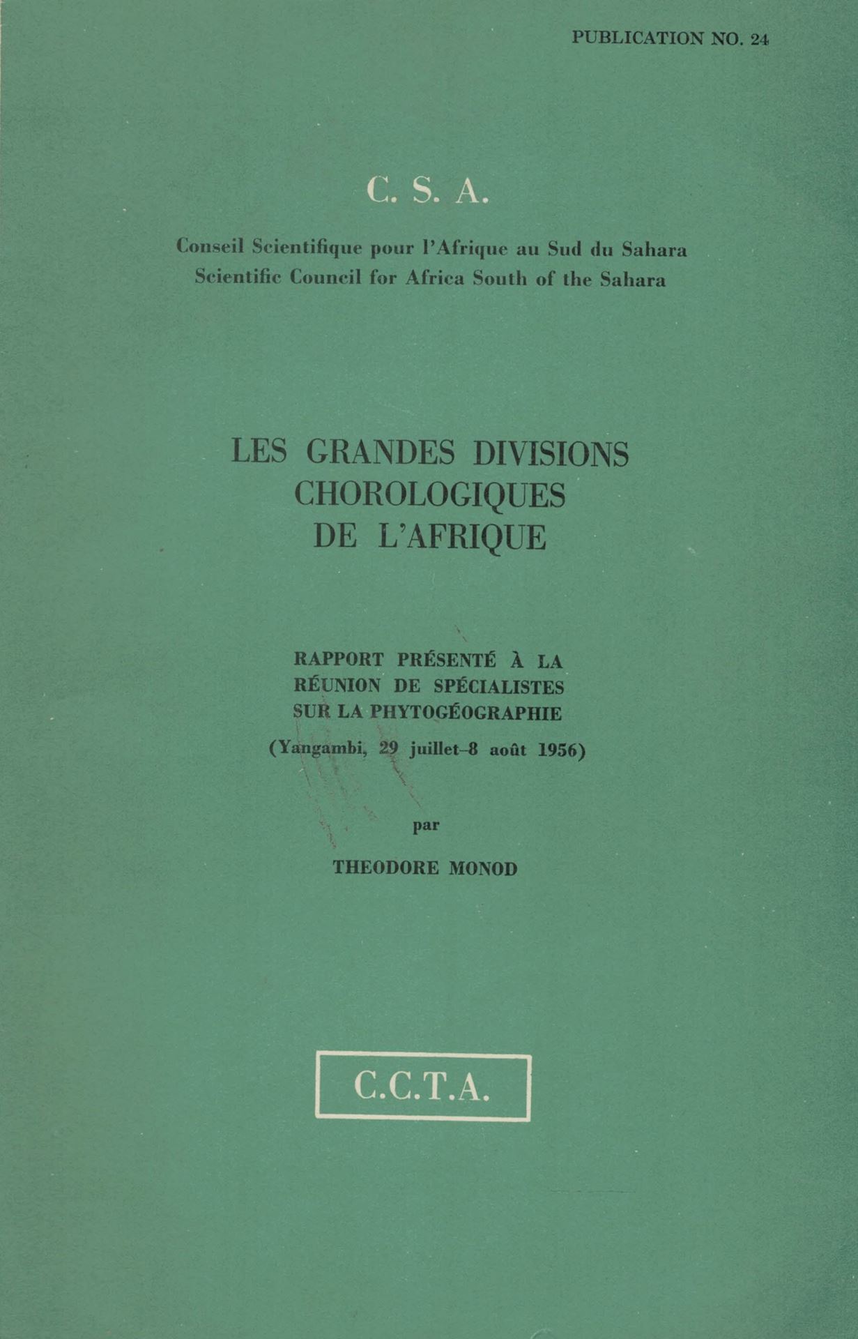Monod, Theodore: Les Grandes Divisions Chorologiques de l'Afrique.1956. 1 foldg. map. 148 p. gr8vo. Paper bd. (90786) 26.75