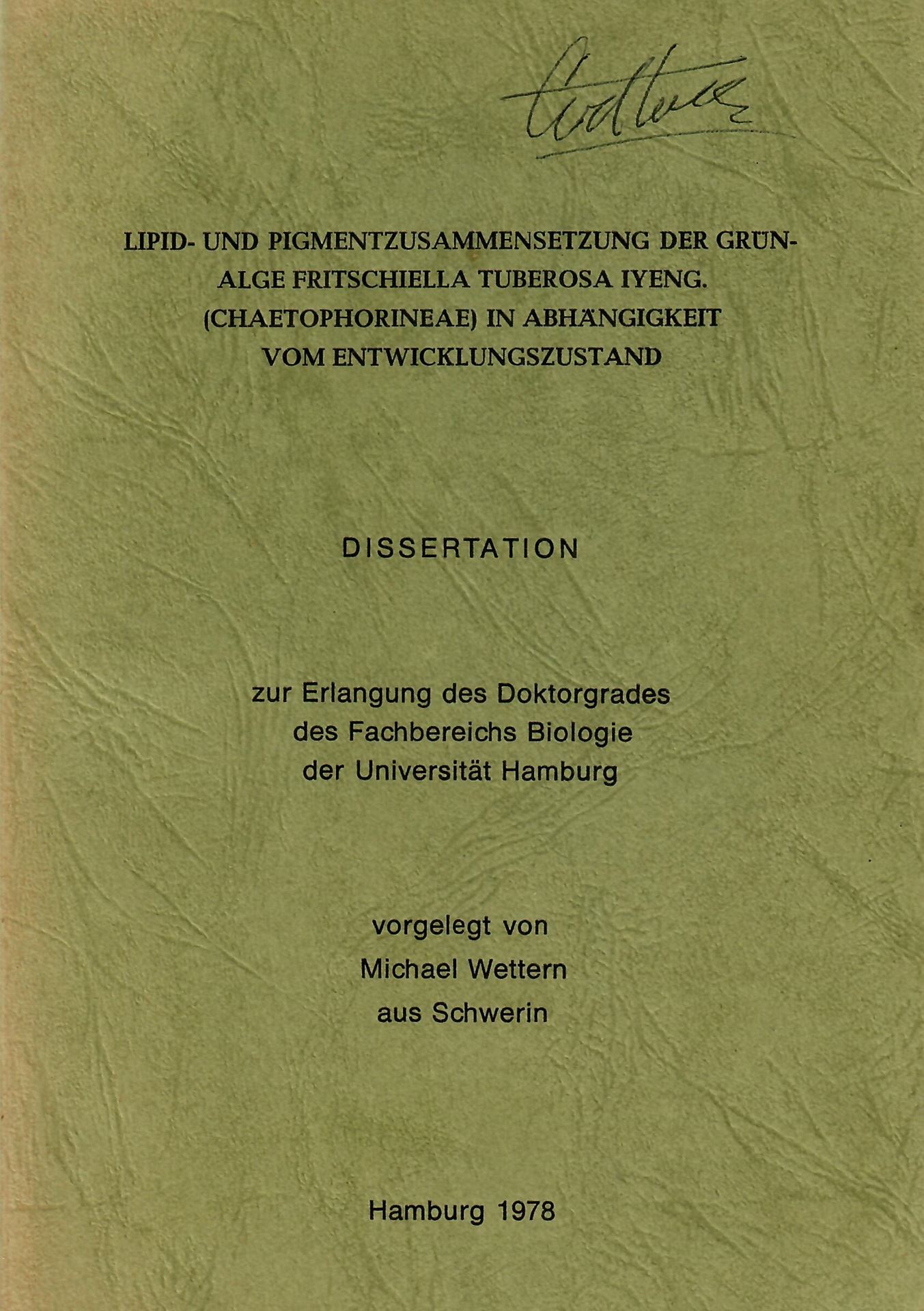 Wettern, Michael: Lipid- und Pigmentzusammensetzungen der Grünalge Fritschiella Tuberosa Iyeng. (Chaetophorineae) in Abhängigkeit vom Entwicklungsstand. 1978. (Dissertation). illustr. IV, 160 S. gr8vo. Broschiert.(84386) 22.47