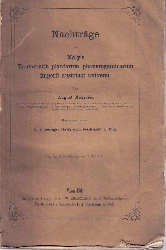 Neilreich, August: Nachträge zu Maly's Enumeratio plantarum phaneroga-marum imperii austriaci universi. 1861. 348 p. (104277) 76.00