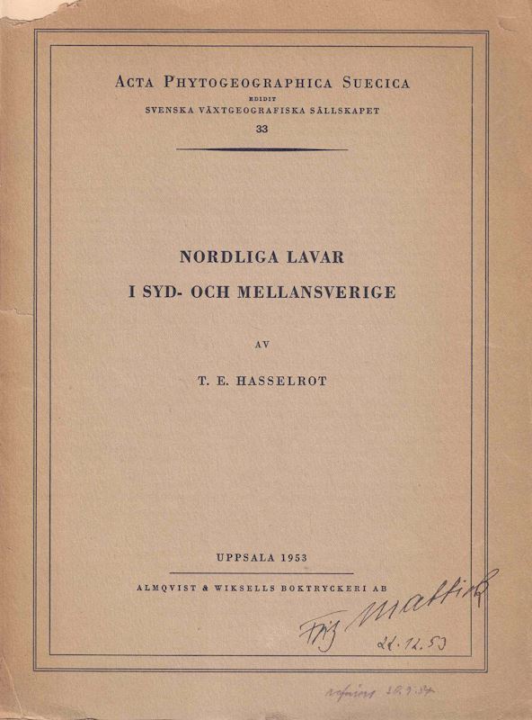 Nodliga Lavar i Syd- och Mellnasverige. 1953. (Acta Phtogeogr. Suecica,33). 29 full-page dot maps. 200 p. gr8vo. Paper bd.