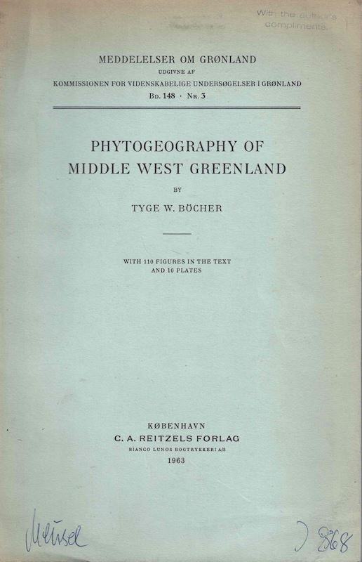 Boecher, Tyge W.: Phytogeography of Middle West Greenland.1963.(Medd. omGrönland, Vol.148 No.3). 10 pls. illustr. 292 p. gr8vo. Paper bd.(1393) 57.78