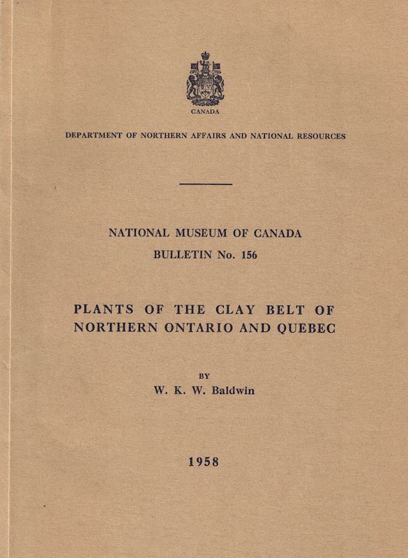 Baldwin, W.K.W.: Plants of the Clay Belt of Northern Ontario and Quebec. 1958. (National Museum of Canada, Bulletin 156). VI,324 p.gr8vo.Cloth. (45096) 35.31