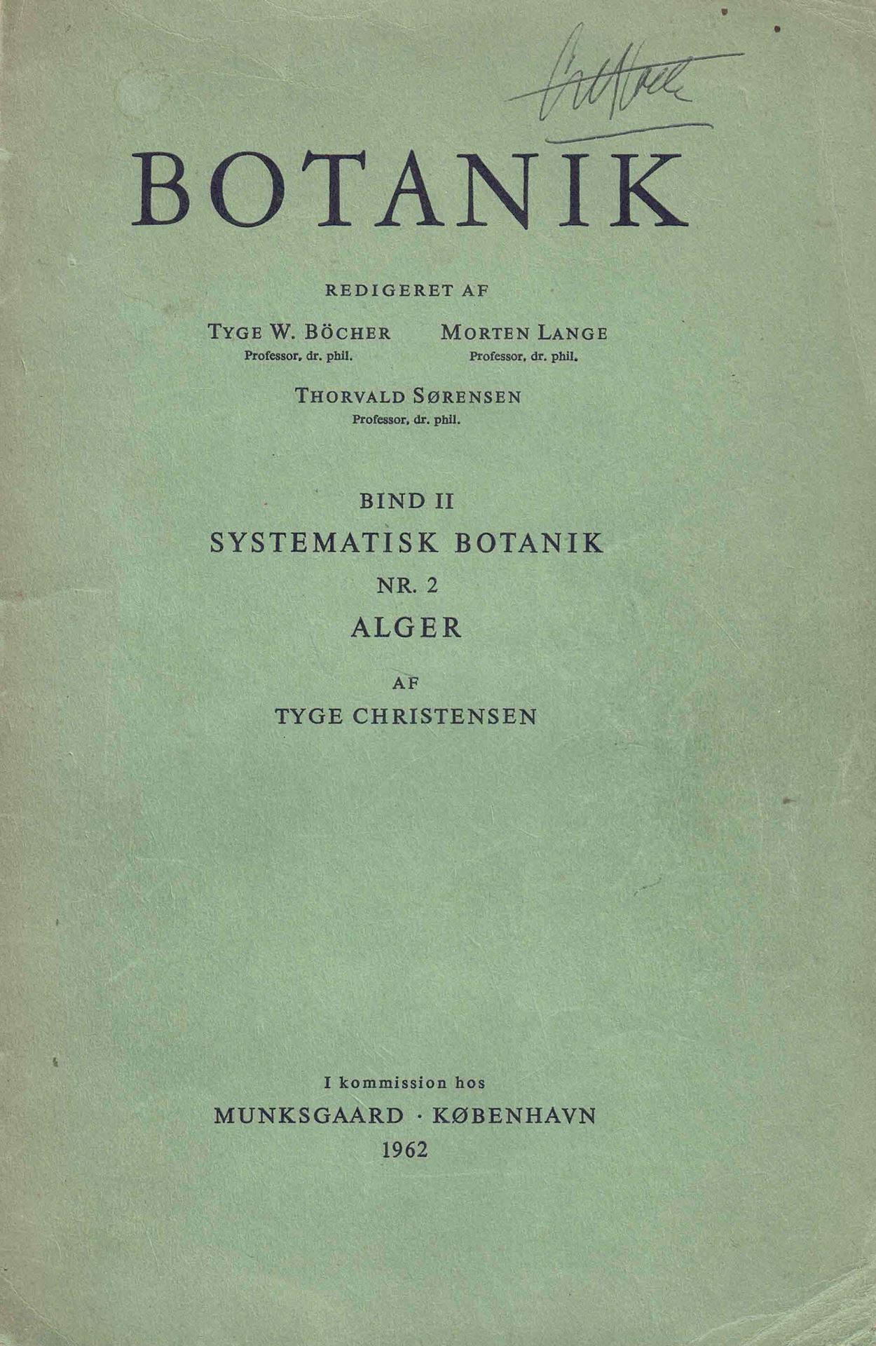 Christensen, Tyge: Systematisk Botanik: Alger. 2nd ed. 1966. (Botanik,Band II, Systematisk Botanik, No. 2). illus. 188 p. gr8vo. Paper bd.In Danish. (77285) 41.73