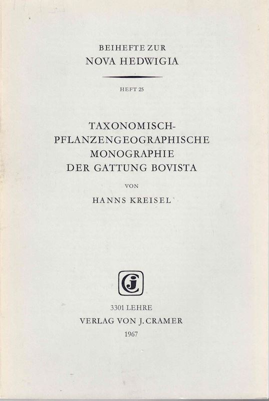 KREISEL, Hanns: Taxonomisch-pflanzengeographische Monographie der Gat-tung Bovista. 1967. (Nova Hedwigia, Beih. 25). 70 Abb. VII,244 S. gr8vo.Brosch. (26008) 31.00