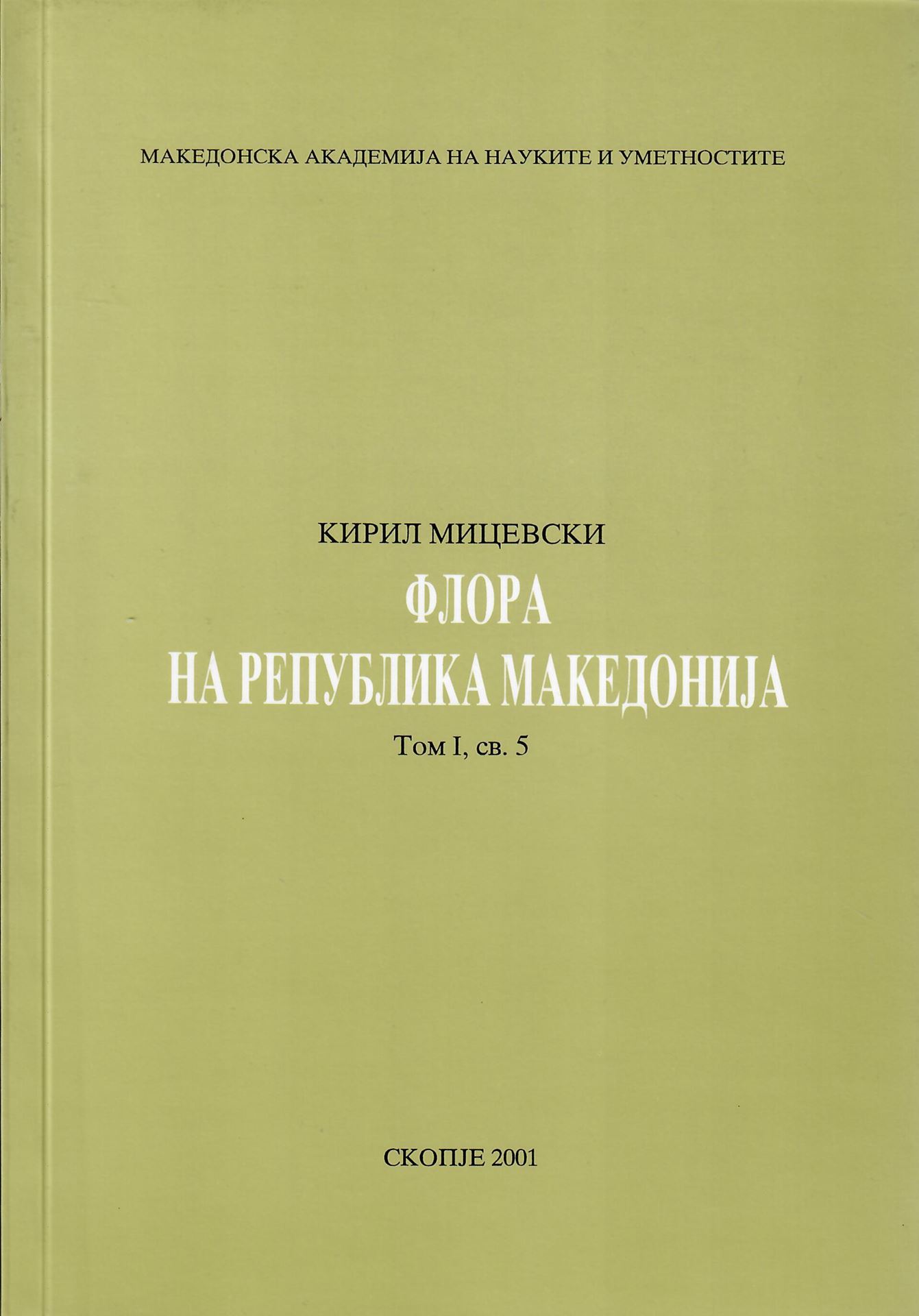 The Flora of the Republic of Macedonia. Volume I, part 5. 2001. 309 p. gr8vo. Paper bd.- In Macedonian.