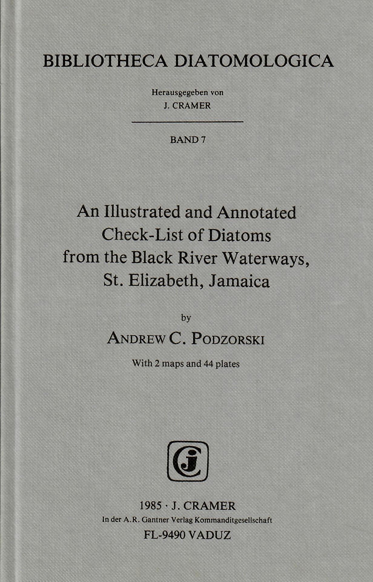 Volume 007:Podzorski,Andrew C.:An illustrated and annotated check-list of diatoms from the Black River Waterways, St.Elizabeth,Jamaica.1985.44 photogr.plates.178 p. gr8vo.Bd. (ISBN 3-7682-1422-2)