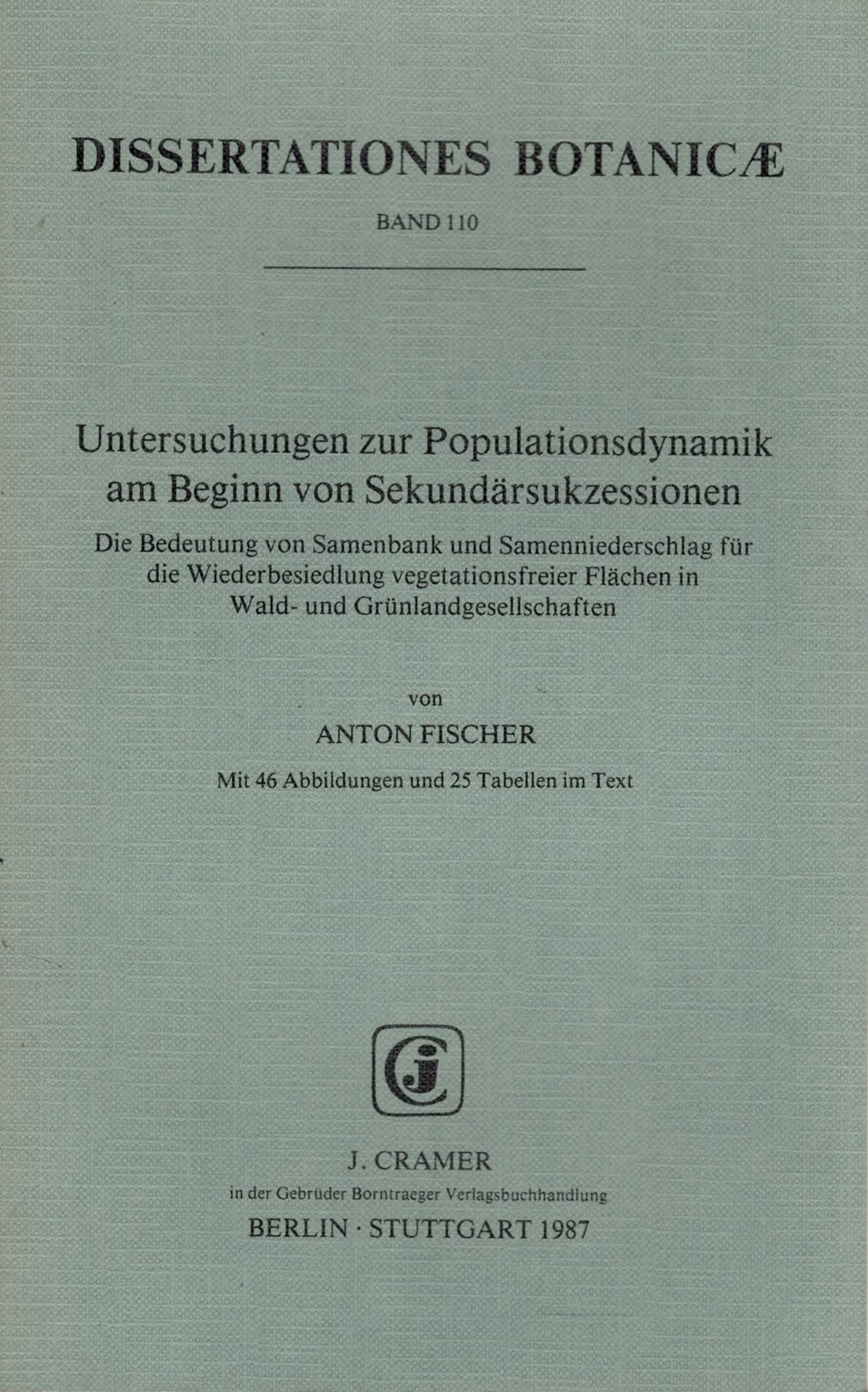 Volume 110: Fischer, Anton: Untersuchungen zur Populationsdynamik am Beginn von Sekundärsukzessionen. Die Bedeutung von Samenbank und Samenniederschlag fuer die Wiederbesiedlung vegetationsfreier Flächen in Wald- und Grünlandgesellschaften. 1987. 46 Abb. 25 Tab. 234 S. gr8vo. Paper bd.
