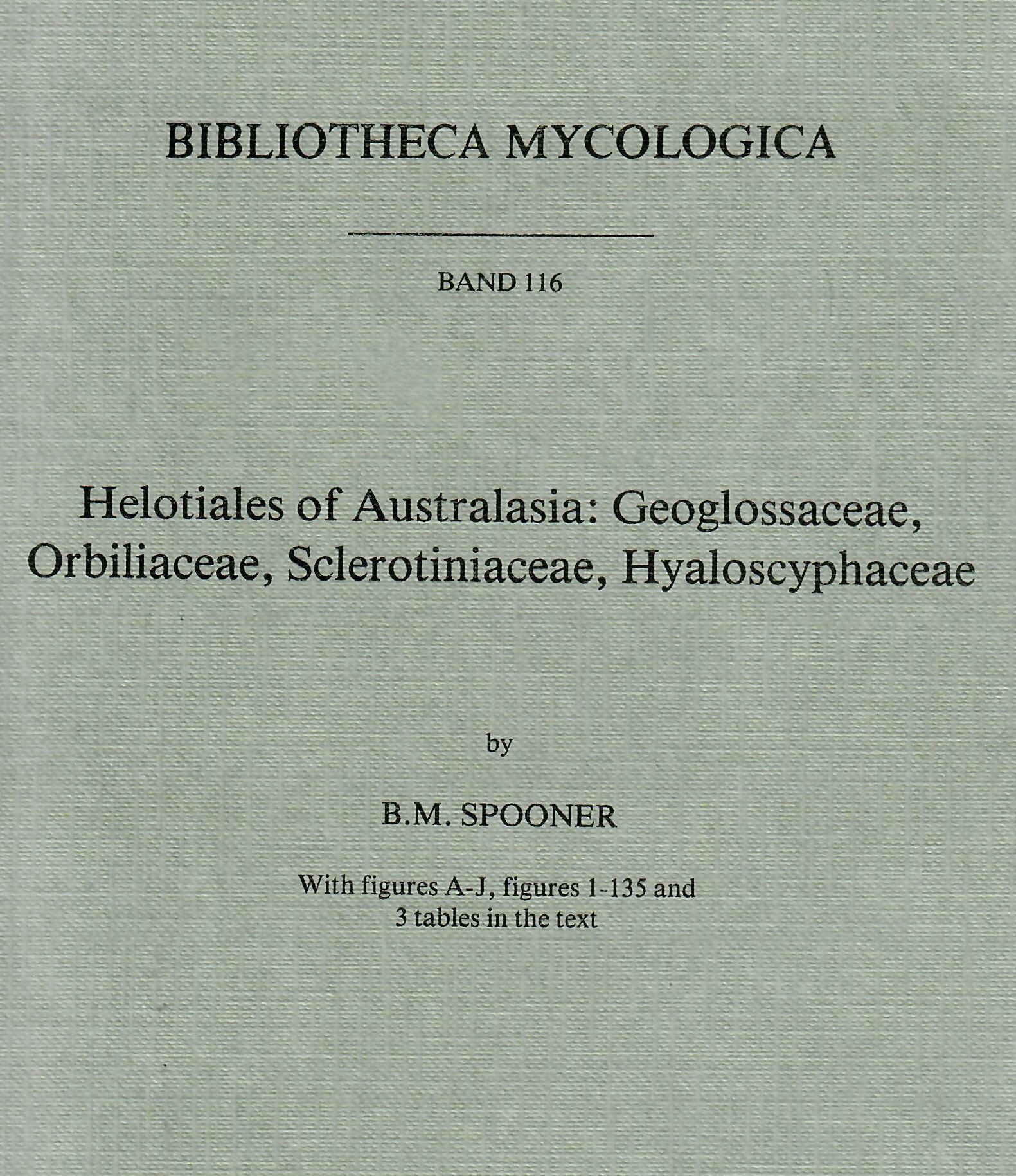 Volume 116: Spooner,B.M.: Helotiales of Australasia: Geoglossaceae, Orbiliaceae, Sclerotiniaceae, Hyaloscyphaceae. 1987. 144 figs. 3 tabs. 711 p. gr8vo. Paper bd.