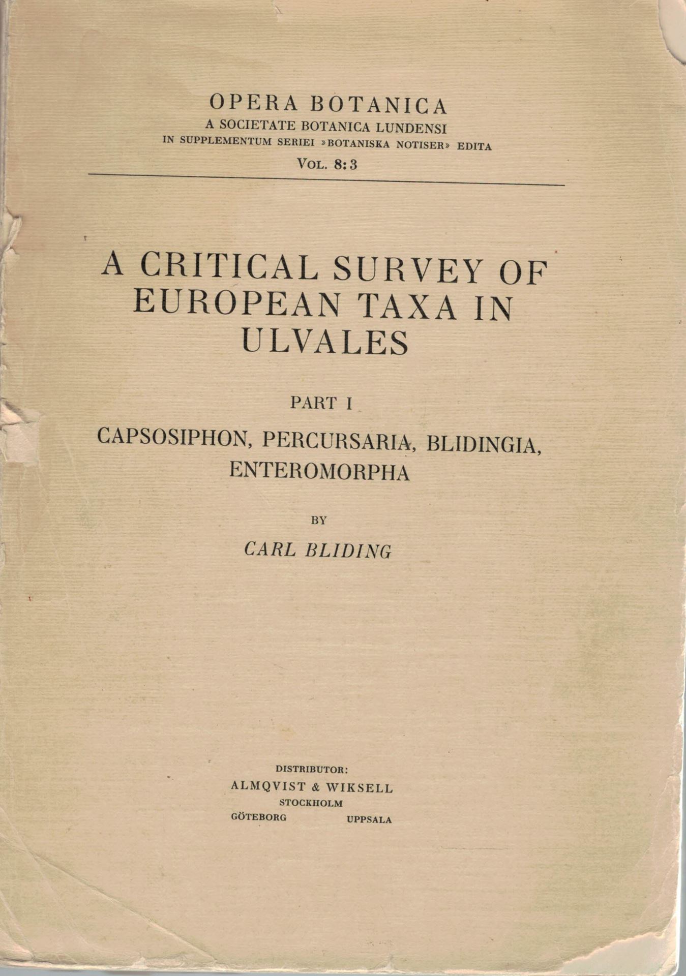 Bliding, Carl:A critical survey of Europ. Taxa in Ulvales.1:CapsosiphonPercusaria, Blidingia, Enteromorpha.1963.(Opera Bot.vol.8:3).92 figs.160 p.gr8vo.Paper bd.(1358) 18.19