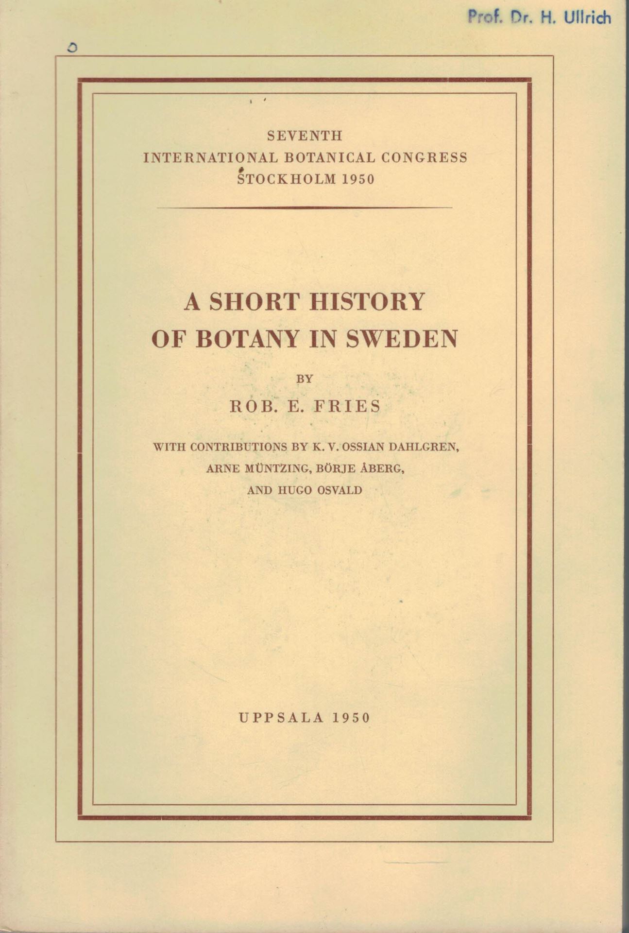 Fries, Rob. E.: A Short History of Botany in Sweden. 1950. illus. 2 foldg. maps. 162 p. Paper bd. (84961) 43.87