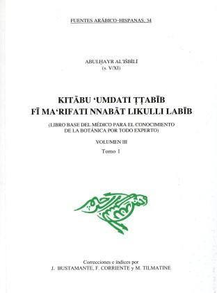 Corriente Cordoba, Frederico, Mohamed Tilmatine and Joaquin Bustamente (eds.): Abu I-hayr al-Isbili: Kitabu Umdati t-tabib fi ma'rifati nnabat likulli labib / Libro base del medico para el conocimiento da la Botanica por todo experto. Vol. 3. 2010. (Fuentes Arabico - Hispanas, Vol. 34). 1062 p. gr8vo. - Bound in 2 volumes. - In Catalans. 117.70 (100592)