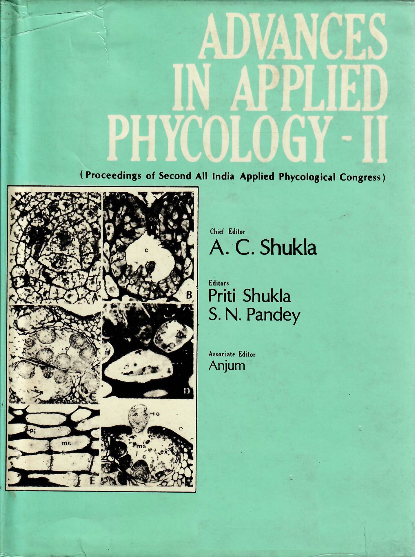 New copy, old stock.- Contents (partly): Biology of reproduction in Turbinaria conoides (J.Agardh) Kuetzing (Fucales, Sargassaceae), Vijayaraghavan, M.R. andGunwant Sokhi/ Indian seaweeds: Resources and Utilization, Pant, A. andArvind Untawale/ Algalization of saline soils and its influence on cropand soil properties, Kaushik, B.D. and B.L.Jain/ Glycollate metabolismin Triceratium dubium brightwell, Rao, V.N.R. and K.Naseem/ Aspects andprospects of self purification of lotic waters, Shukla, A.C./ Algalaeroflora from Aurangabad, Tilak, S.T. and Sabina Anis/ Growth responsesof prokaryotic algae towards heavy metals, Gupta, R.S. and Usha Verma/Studies on correlative pyruvic acid protein interweb in certainchlorophyceae and cyanophyceae, Anjum and A.C.Shukla/ A contribution tothe marine algae of Andaman and Nicobar islands and its significance,Awasthi, A.K./ Periodicity and succession of algae growing inassociation with Wolffia arrhiza, Awasthi, A.K. and A.C.Shukla/Characterization of penicillin resistant strain of Scenedesmus bijugatus(Turp.) Kuetz. and its mutant Subm-I., Bajaj, V. and Pushpa Srivastawa/etc.