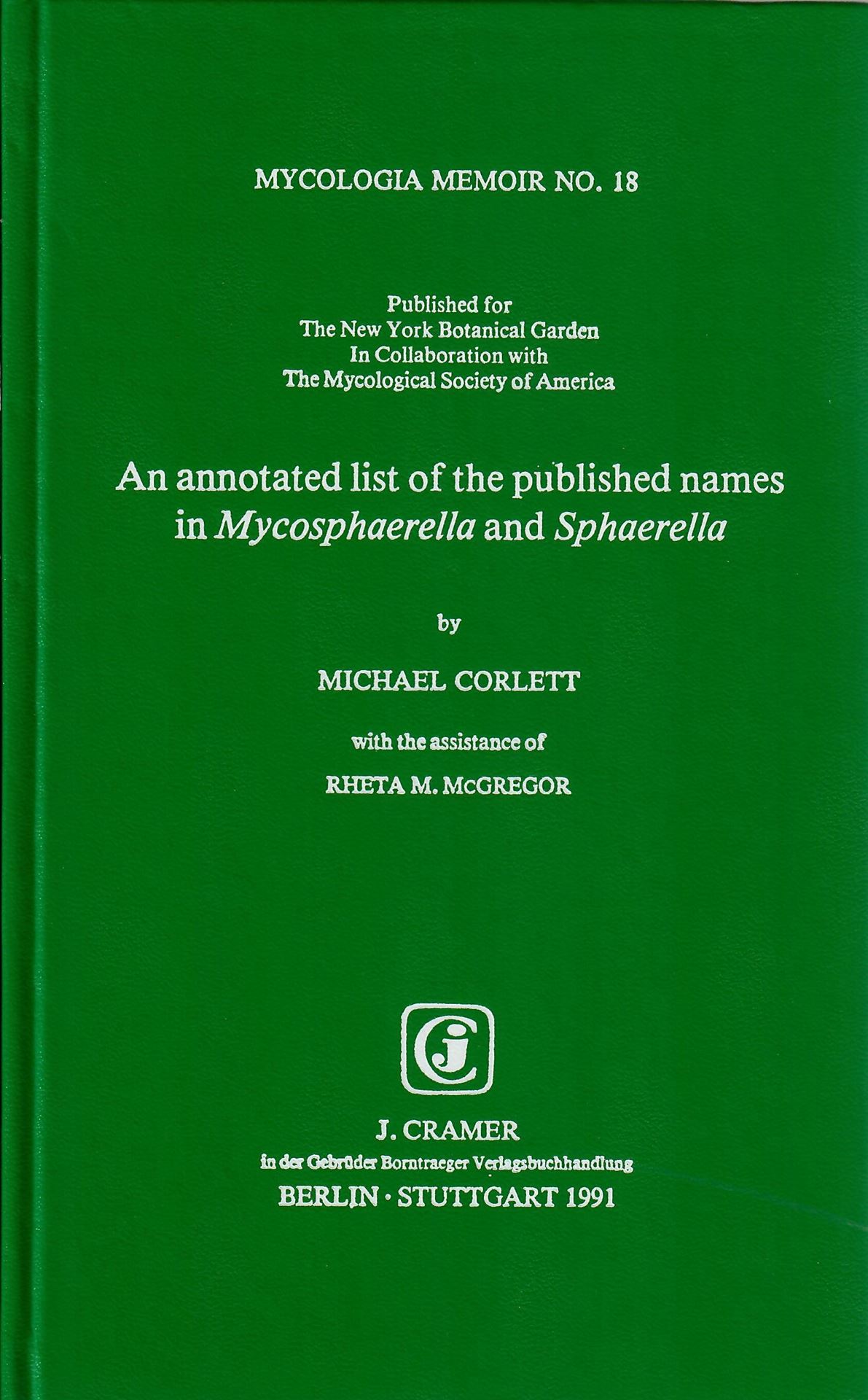 CORLETT, Michael: An annotated list of the published names in Myco- sphaerella and Sphaerella. 1991. (Mycologia Memoir, no. 18). 328 p. gr8vo. Cloth. (44467) 65.00