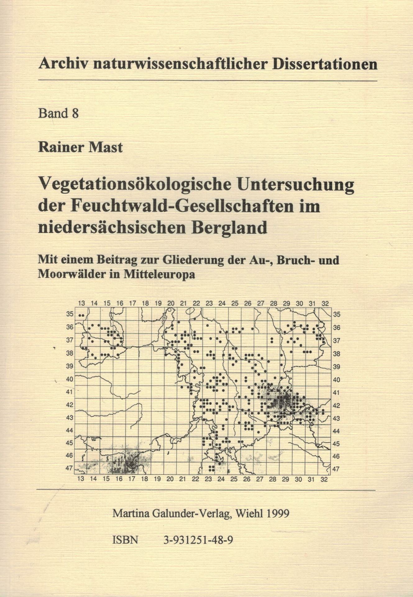 Archiv naturwissenschaftlicher Dissertationen: Band 08: Mast, Rainer: Vegetationsökologische Untersuchung der Feuchtwald - Gesellschaften im niedersächsischen Bergland. Mit einem Beitrag zur Gliederung der Au-, Bruch- und Moorwälder in Mitteleuropa. 1999. (Diss.). 8 Beilagen. 280 S. Broschiert. (75847) 51.00