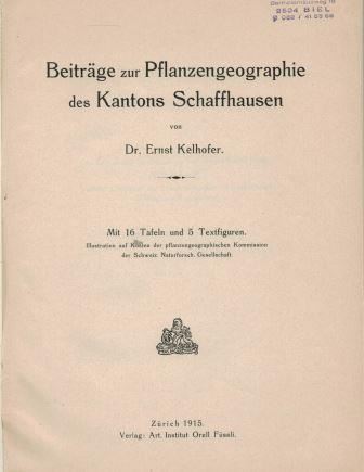Kelhofer, Ernst: Beiträge zur Pflanzengeographie des Kantons Schaffhausen. 1915. 5 Fig. 16 Tafeln. 206 S. gr8vo. Leinen. 66.34 (90450)