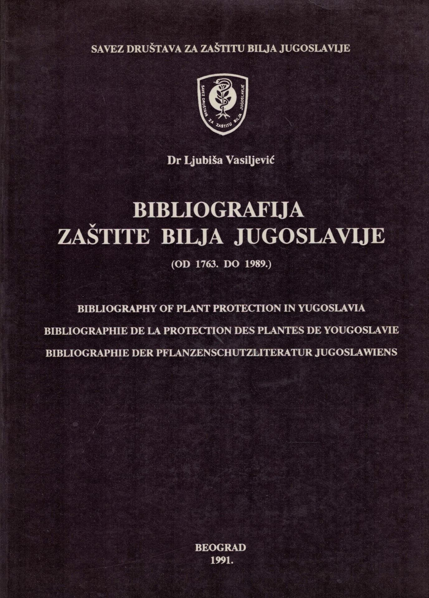 Bibliografija Zastite Bilja Jugoslavije 1763-1989. (Bibliography of Plant Protection In Yugoslavia 1763 - 1989). 1991. XI, 484 p. - In Serbian, German, English & Frenche.