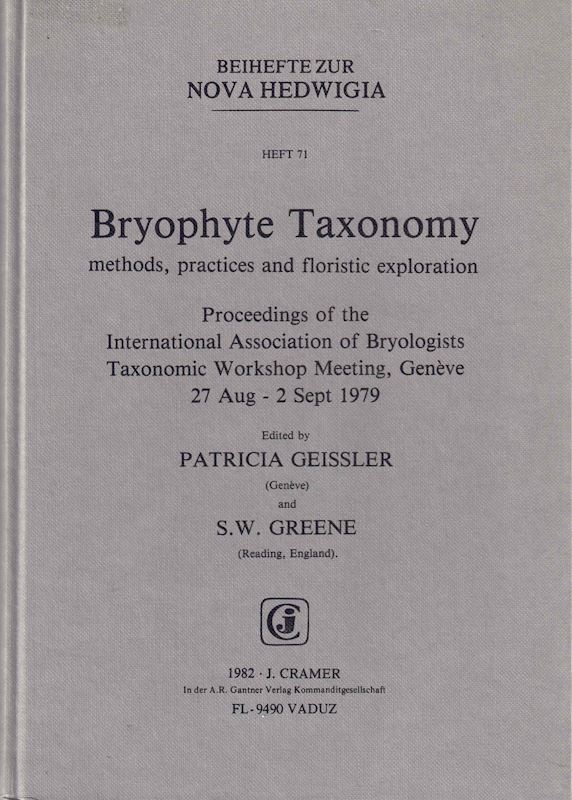 Page image GEISSLER, Patricia and S.W.GREENE (eds.): Bryophyte Taxonomy. Methods, Practices and Floristic Exploration. Proceedings of the International Association of Bryologists Taxonomic Workshop Meeting, Geneve, 27.August-2.Sept. 1979. 1982. (Nova Hedwigia, Beih. 71). Reprint 1996. XVIII,588 p. gr8vo. Bound. (4407) 128.00 (ISBN 978-3-7682-5471-7)
