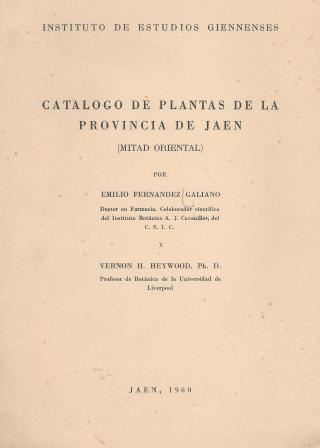 FERNANDEZ GALIANO, Emilio and Vernon H.HEYWOOD: Catalogo de Plantas de la Provincia de Jaen (Mitad Oriental). 1960. 205 p. gr8vo. Paper bd. - In Spanish. - Second hand copy.(29876) 32.00