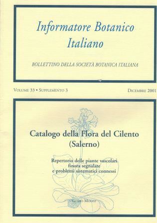 Moggi, Guido: Catalogo della flora del Cilento. Repertorio delle piante vascolari finora segnalate e problemi sitematici connessi. 2002. (Informatore Botanico Italiano 33, Supplemento 3). 12 extra pls. with 32 col. photogr. 4 maps. 116 p. gr8vo.(86311) 87.74