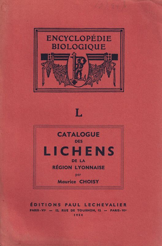 Catalogue des Lichens de la Région Lyonnaise. 1954. (Encylopédie Biologique, 50). 184 p. Paper bd.
