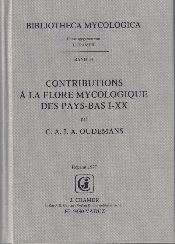 OUDEMANS, C.A.J.A.: Contributions a la Flore Mycologique des Pays-Bas,I-XX. 1873-1904. (Reprint 1977, Bibl.Mycol.,54). illus. 1057 p. Hardcover.(19369) 164.78(ISBN 978-3-7682-1107-9)