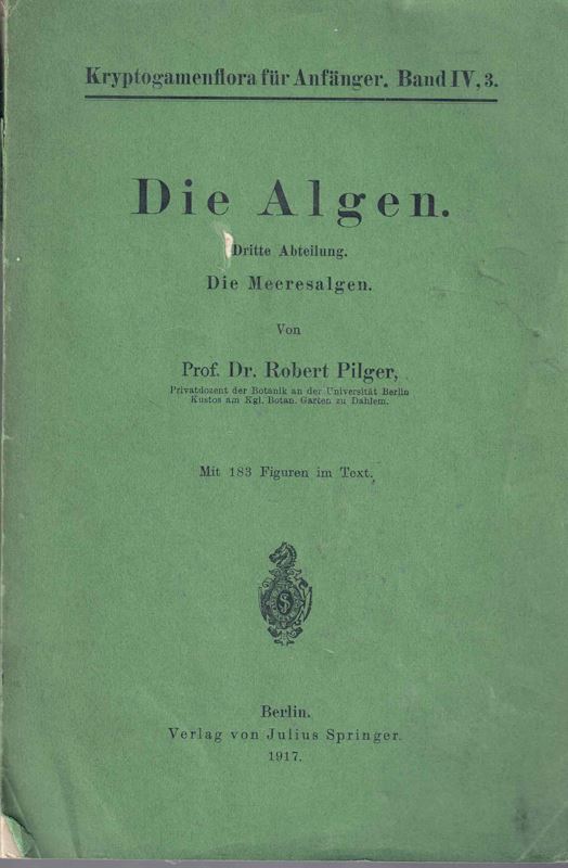 Die Algen. Dritte Abteilung: Die Meeresalgen. 1917.(Kryptogamenflora für Anfänger, Band IV,3). 183 figs. 125 S. Broschiert.