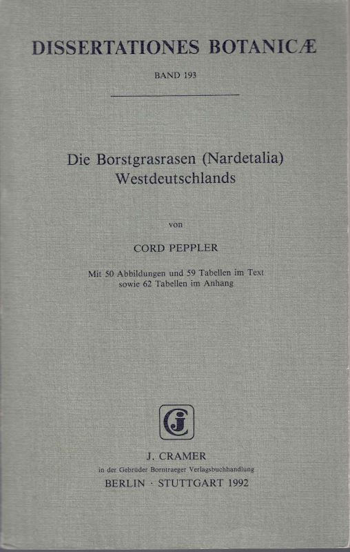 Peppler, Cord: Die Borstgrasrasen(Nardetalia) Westdeutschlands. 1992.(Diss.Bot., 193). 50 Abb. 59 Tabellen im Text sowie 62 Tabellen imAnhang. XVI,404 p. gr8vo. Paper bd. (49387) 98.00
