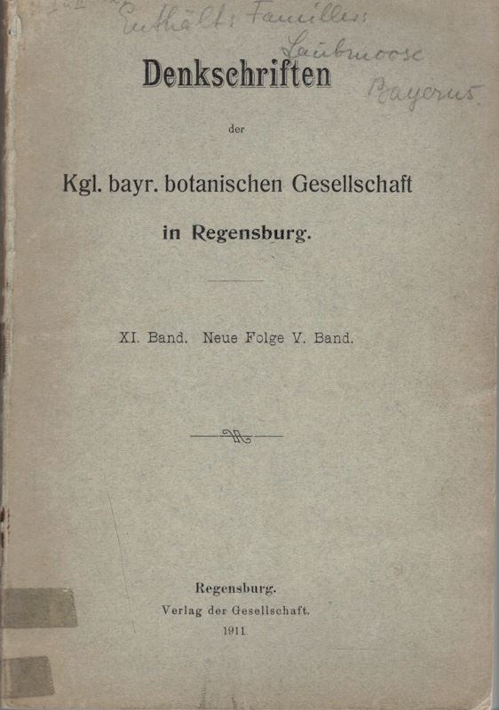 Die Laubmoose Bayerns. Eine Zusammenstellung der bisher bekannt gewordenen Standortsangaben. 1911. (Denkschriften der kgl. Bayerischen Bot. Ges. in Regensburg, Band XI). 233 p. gr8vo. Broschiert.