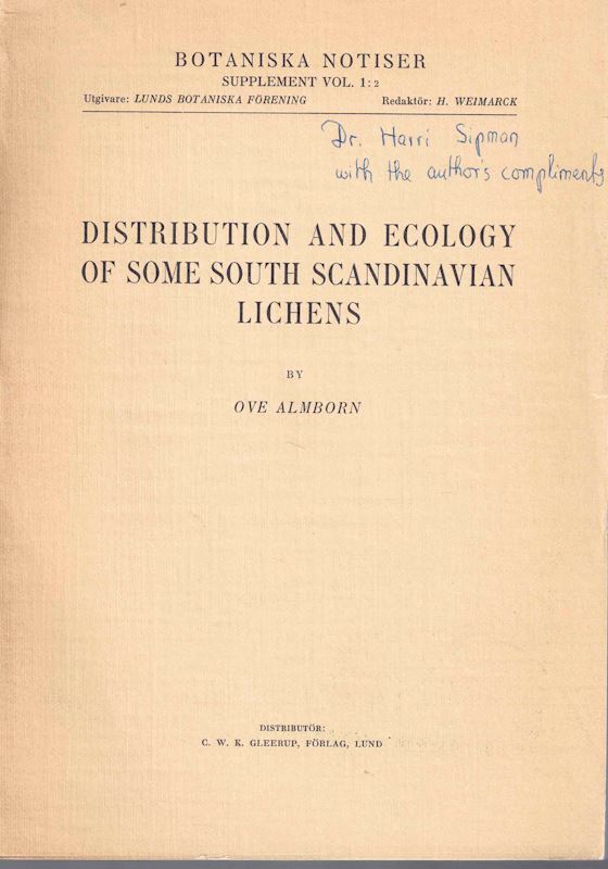 Distribution and Ecology of Some South Scandinavian Lichens. 1948. (Botaniska Notiser, Suppl. 1:2). Many dot maps. 252 p. gr8vo. Paper bd.