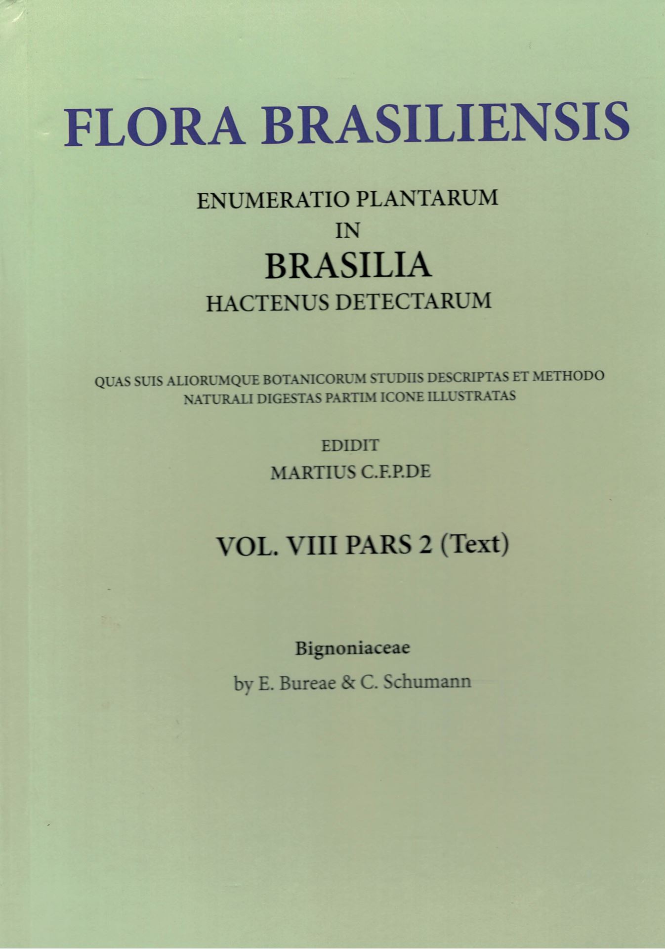 Ed. by C.F.P. von Martius, A.G.Eichler & I.Urban: Volume 08:02: Bureae, E. and C. Schumann: Bignoniaceae. 1896-1897. (Reprint 2002). Plates 69-121. 448 p. Paper bd.