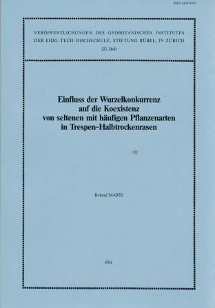 Marti, R.: Einfluss der Wurzelkonkurrenz auf die Koexistenz von seltenen mit haeufigen Pflanzenarten in Trespen Halbtrockenrasen/The influence of root competition on the coexistence of sparse and common perennials in two limestone grasslands.1994.(Veroeffentlichung d. Geobot. Institutes d. ETH,Stiftung Ruebel,Heft 123).22 tabs.32 figs.147 p.gr8vo.Paper bd. (61284) 37.45