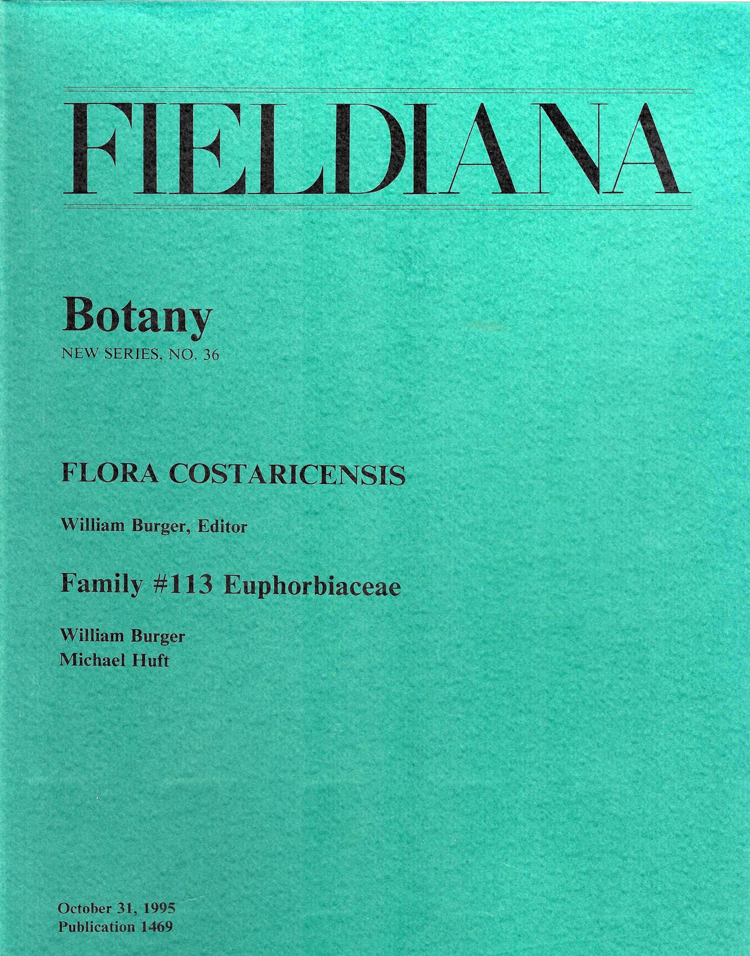 Flora Costaricensis. Family 113: Euphorbiaceae. (Fieldiana Botany, NS.36). 1995. illus. 169 p. gr8vo. Paper bd.