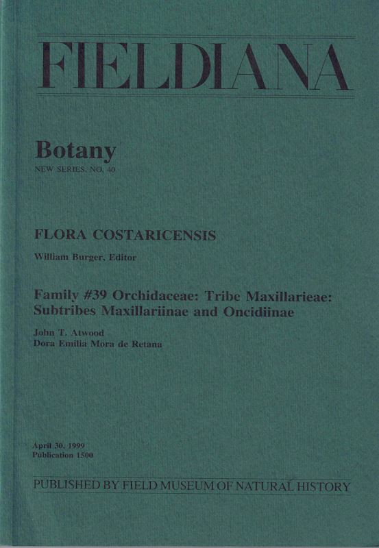 Burger, William (ed.): Flora Costaricensis. Family 39: ORCHIDACEAE: Tribe Maxillarieae: Subtribes Maxillariinae and Oncidiinae, by John T. Atwood and Dora Emilia Mora de Retana. 1999. (Fieldiana, Botany, NS,40). 40 plates (line - drawings). 182 p. gr8vo. Paper bd. 43.87 (75957)
