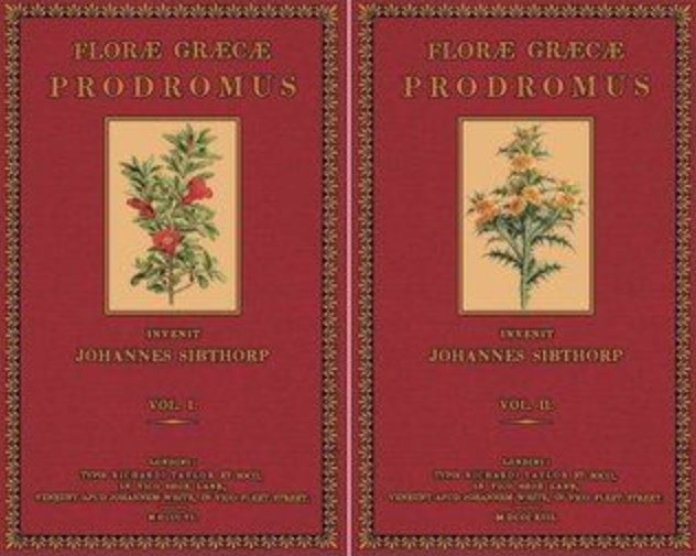 Flora Graeca Prodromus: sive plantarum omnium enumeratio, quas in provinciis et insulis Graeciae invenit Johannes Sibthorp... 2 volumes 1806 -1816. (Reprint 2008). XIX, 864 p. Hardcover.
