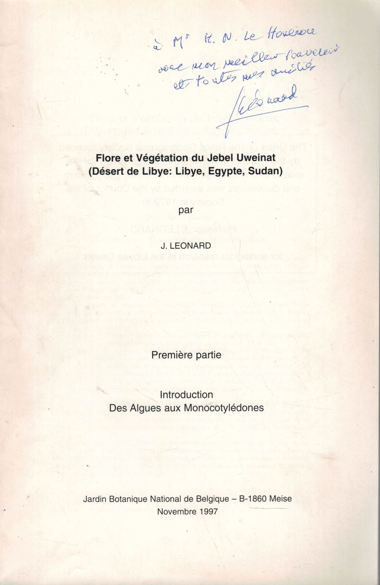 A set of off-prints from Bull Jard.Bot Nat. de Belgique and Scripta Botanica. Most issues carry a dedication from the author to Prof. Le Houerou. Part 6 is the last scientific publiucation of J. Leonard aged 81 at this time.