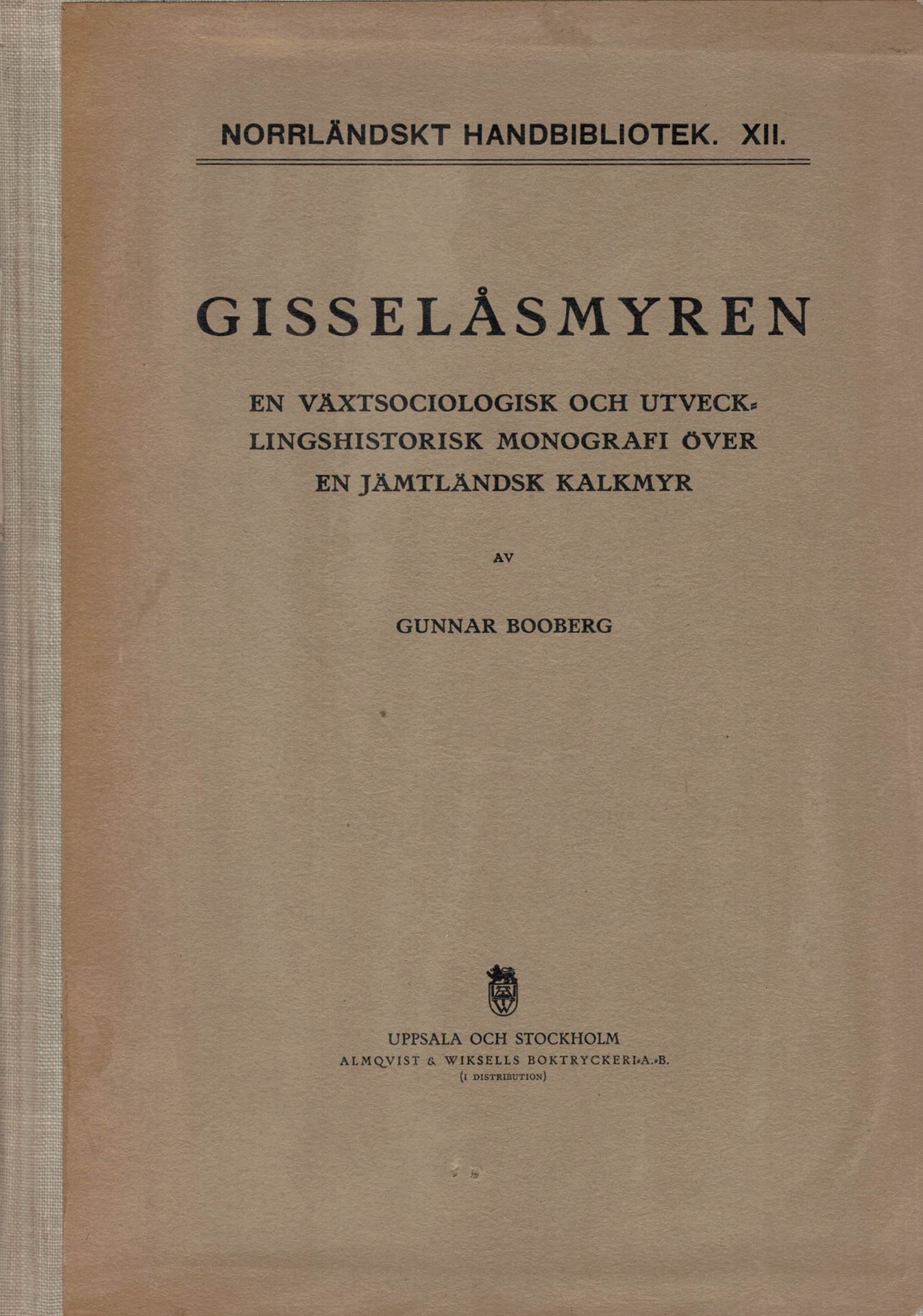 Booberg, Gunnar: Gisselaesmyren.En Vaextsociologisk och Utvecklings- historisk Monografi oever en Jaemtlaendsk Kalkmyr. 1930. (Norrlaendskt Handbibliotek,12). 1 col.map. 29 pls. XX,329 p. gr8vo. Hardcover. - In Swedish, with Resume in German. (58306) 41.73