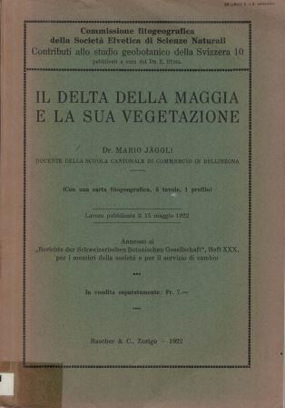 Il Delta Della Maggia E La Sua Vegetazione. 1922. (Contributi allo studio geobotanico della Svizzera 10). 1 col. folding map. 5 pls. 174 p. gr8vo. Paper bd.- In Italian.