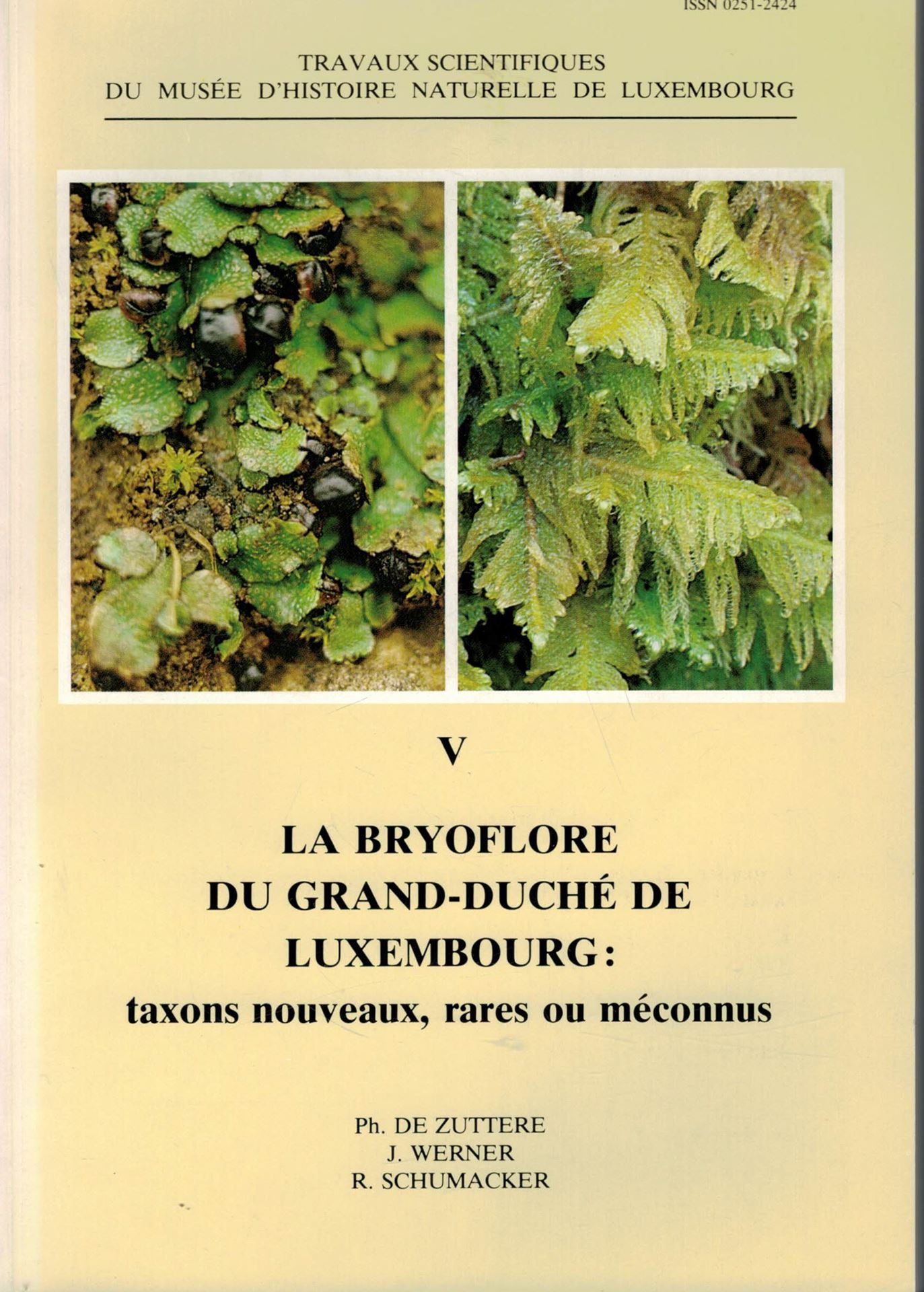 Zuttere, Ph. de, J. Werner et R. Schumacker: La Bryoflore du Grand Duche de Luxembourg: Taxons Nouveaux, Rares ou Meconnus. 1985. (Travaux Scientifiques du Musee d'Histoire Naturelle de Luxembourg, V). 41 cartes de repartition. 153 p. 8vo. Cartonne. (21386) 19.26