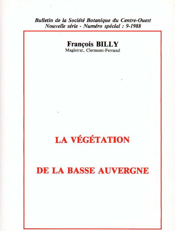 BILLY, Francois: La Vegetation de la Basse Auvergne. 1988. (Bull.Soc. Bot. du Centre-Ouest, N.S., No. Special 9). 416 p. gr8vo. Toile. 52.43 (32189)