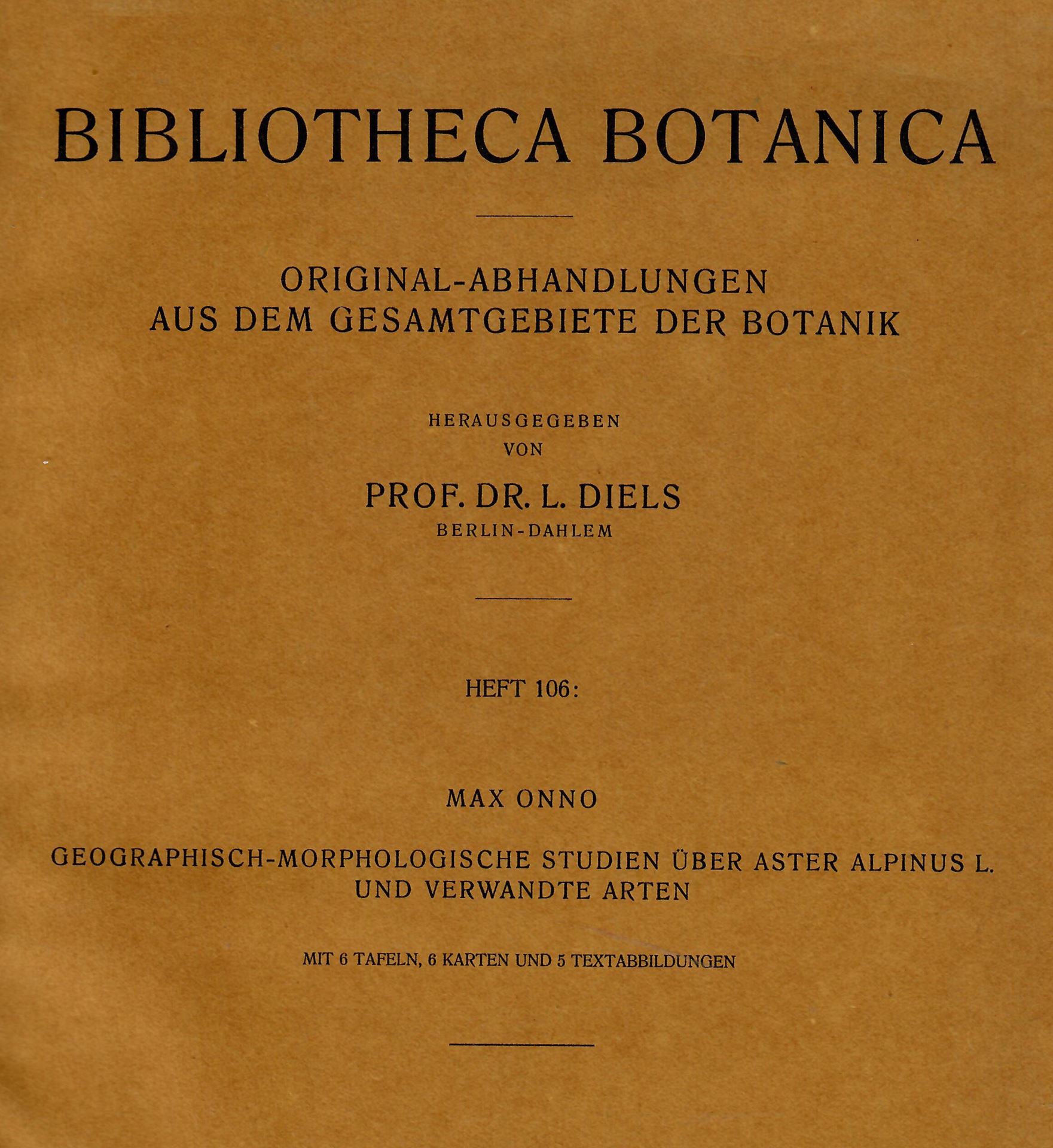 Bibliotheca Botanica: Original-Abhandlungen aus dem Gesamtgebiet der Botanik. Heft 106: Onno, Max: Geographisch-morphologische Studien über Aster Alpinus L. und verwandte Arten. 1932. illus. Kt. Taf. 83 S. 4to. Broschiert. (95431) 39.00
