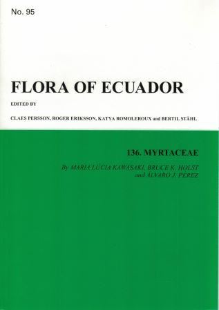 The Ecuadorian members of Myrtaceae are revised. Fifteen genera and 131 native species are documented in Ecuador, viz. Amomyrtella (1 sp.), Blepharocalyx (1 sp.), Calycolpus (2 spp.), Calyptranthes (28 spp.), Campomanesia (2 spp.), Eugenia (43 spp.), Myrcia (20 spp.), Myrcianthes (10 spp.), Myrciaria (4 spp.), Myrrhinium (1 sp.), Myrteola (2 spp.), Plinia (5 spp.), Psidium (10 spp.), Siphoneugena (1 sp.) and Ugni (1 sp.). Three additional genera, not treated in this volume, are introduced and cultivated in Ecuador, viz. Callistemon, Eucalyptus and Syzygium. Keys to the genera and species are presented along with information on ecology and distribution. Illustrations of at least one species of each genus are provided. Five species, Calyptranthes brunnea B. HOLST & M. L. KAWAS., C. orientalis B. H0LsT & M. L. KAWAS., Eugenia zamorensis B. HOLST & M. L. KkwAs., Myrcia lojensis B. HOLST & M. L. KAwAS. and Myrcianthes rubra B. HOLST & M. L. KAwAS., are described as new to science and a new combination, Myrcianthes alaternfolia (BENTH.) Giuro ex B. HOLST & M. L. KAWAS., is made.